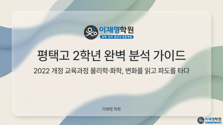 용죽지구 평택 물리 학원, 평택 화학 학원, 2022개정 물리 화학도 문제없습니다. 새로운 개정으로 시작되는 탐구 시험이었습니다. 이재영 학원은 끄떡없습니다. 물리학 화학 모두 1등급들 배출입니다. 평택고등학교 2학년 2022개정 물리학 화학 이재영 학원 변화를 읽고 파도를 타다. 한눈에 보는 물리학 화학 변화지표 선배들의 족보,, 족보닷컴이 통하지 않는 2026년 2학년들입니다. 통합과학에서 날렵해진 전기 파트가 2학년의 새로운 승부처가 되었습니다. 처음이었던 파트여서 그런지 어려운 내용이긴 하지만. 문제는 쉽게 출제되었습니다. 중등부 정도 저항 구하는 내용이었습니다. 부교재에서의 출제율이 높았습니다. (어려운 과목이니 너....... <img src="https://blogthumb.pstatic.net/MjAyNjA0MjlfMTEy/MDAxNzc3NDU5ODE2MDUy.2rxxjg_Bz6MKblLr5P6ADpvvdQTUt0qM9QNxi4kePf4g.GDoTIRUX9Zi5MZl7hlg5VhOGI9hTZz4K9kH3aH6osJog.JPEG/2026.1%C7%D0%B1%E2_%C1%DF%B0%A3%B0%ED%BB%E7_%B0%ED2_%B9%B0%B8%AE_%C8%AD%C7%D0-01.jpg?type=s3" />