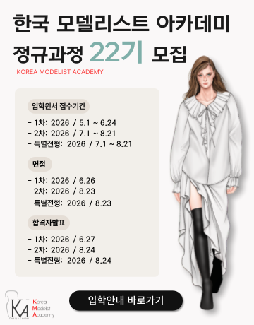 안녕하세요! 패턴전문교육기관 한국모델리스트아카데미(KMA) 입니다. 감성, 창의성, 소통, 협업의 모델리스트 전문인을 양성하는 KMA KMA는 실력과 인성을 겸비한 모델리스트를 양성하고자 합니다. 정규과정은 패턴사 분야의 취업 및 브랜드 창업을 준비하는 전문과정입니다. 저희 한국모델리스트아카데미의 정규과정의 가장 큰 장점을 몇가지로 정리하면 첫째, 전 과목 실무자 중심의 높은 수준의 현장감 넘치는 교육으로 기초부터 탄탄하게 다진 후, 현장 취업으로 연계하고 있습니다. 일방적인 이론수업이 아닌 토론 중심의 자유로운 수업 분위기이기 때문에 많은 양의 수업도 열심히 하게 되는 원동력이 됩니다. 둘째, 이희춘 원장님께서 직....... <img src="https://blogthumb.pstatic.net/MjAyNjA0MjNfMTUx/MDAxNzc2OTEzNDgwMTgx.b9A77u7kxLNlX2MtaMGozFtVoD-wa1R6O6fSsnRS1LMg.KzTYRTvAb2fG89RiZjVYIYT5HSfQbWQUFQE9FSOkbIIg.PNG/%C1%A4%B1%D4%B0%FA%C1%A422%B1%E2%B8%F0%C1%FD-004_%281%29.png?type=s3" />