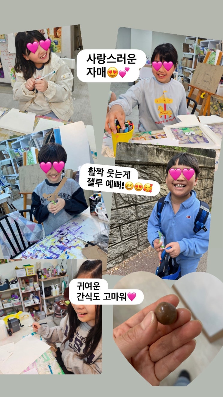 아트크림 아이들과 함께 뛰는 봄 4월의 막바지 4월도 거의 끝을 향해 가고 있어요~ 살랑살랑 봄이란 계절이 또 금새 지나가고 뜨거운 여름이 금방이라도 다가올 것 같은 요즘입니다!✨ 햇살이 참 좋아서 , 아이들과 함께 그저 덩달아 기분좋아지는 날이 많았던 4월입니다~^^ 월요일 주제별 아동화 시간에는 각자의 책가방과 내용물들을 관찰하며 그려보고 스퀴시도 만들어보았구요~^^ 자연환경보호 포스터도 열심히 그려보았답니다 수요일 만화수업 시간은 각자의 진도에 맞추어 개별적으로 진행되고 있는데~ 투시, 액션동작, 여러가지 앵글로 그려보기 등! 즐겁게 접근하면서 다양하게 그려볼수 있도록 지도하....... <img src="https://blogthumb.pstatic.net/MjAyNjA0MjVfMTM5/MDAxNzc3MDk1NTk5NjY0.9Bdd5OEoOwpH4CLXzks7OFPp3kjT0uJANyZu4umsSnAg.wUzgJPZB5edPOITlF2WWax59Hzm0hmpEENEp-VI-QUwg.JPEG/5BC1DAFF%A3%AD6F69%A3%AD4DFF%A3%AD8634%A3%AD4D401D78F2D6.jpg?type=s3" />
