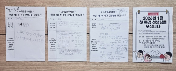 특강 선생님 유창하지만 친구들이 공부하며 정말 어려웠던거, 친구들과 함께 해보고 싶었던것을 얘기해보고 친구들의 다양한 생각들을 들어보고 싶어 이벤트를 준비해보았습니다♡ ♡선물♡ 뽑힌 친구는 과자 박스♡ 열심히 써준 친구에게도 선물을♡ 저의 취지에 맞게 본인이 공부하며 어려웠던 다양한 음악 기호를 메모리 게임으로 친근하고 재미있게 특강을 해보자 의견을 낸 멋진 김*찬 친구♡ 친구의 메모리 특강은 2월에 함께 해요♡ 특강으론 불가하지만 웃긴 글과 그림으로 인기상을 받은 강*혜 제가 여는 이벤트에 늘 열심히 참가해주고 늘 빅 웃음 주는 재주꾼 어려운 부분을 써준 황*준♡ 더 열심히 썼음 과자박스 받는데 아....... <img src="https://blogthumb.pstatic.net/MjAyNjA0MjVfNDkg/MDAxNzc3MDk1NTgxNjE4.NDY7NYEtcKtq05i6N7RZy-mdDdj6fBjM6BRAW9U5wwog.prKPl9HnOEgj0Cjo8jnT9g_44eJuOniVj6igGUwqL3Mg.JPEG/900_1777095581043.jpg?type=s3" />