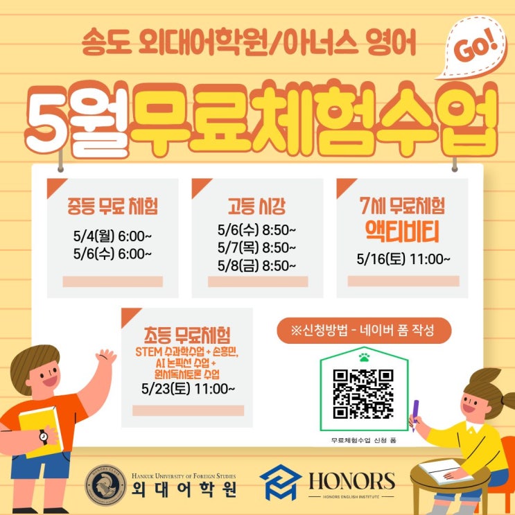 송도 외대어학원/송도 아너스 영어[5월 초중고 무료체험 수업 & 시강 안내]
