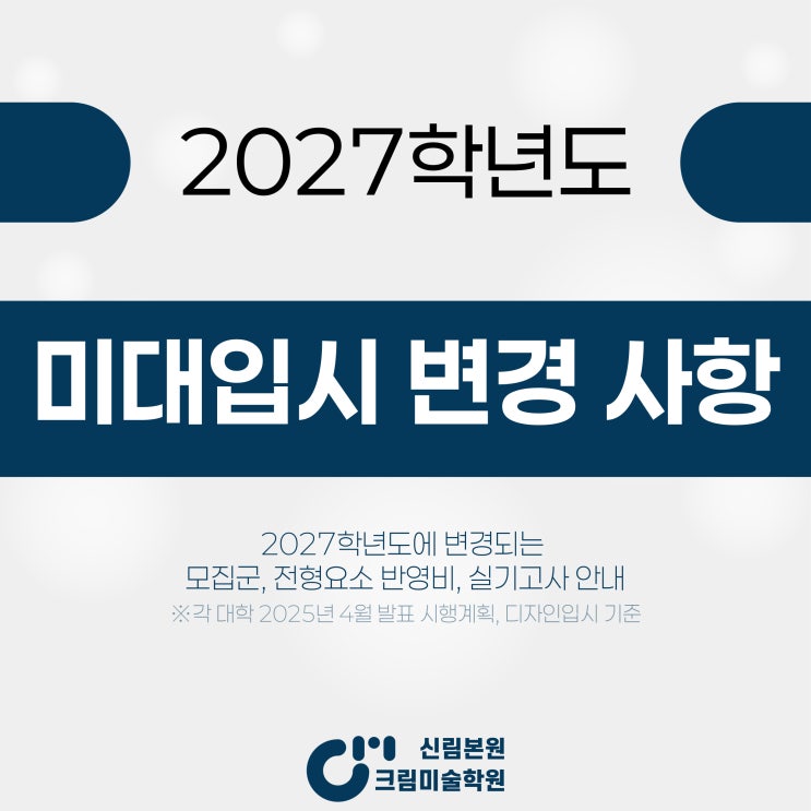 [2027학년도 미대입시 변경 사항 안내] *핵심변화 "실기비중확대", "기초디자인 일원화", "모집군 변동"_ 관악구 크림미술학원 신림본원