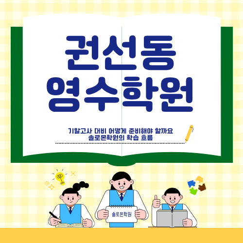 범위가 넓어지는 시험, 준비 방식이 달라져야 합니다 기말고사는 중간고사와는 다르게 준비 방식 자체가 달라지는 시험입니다. 시험 범위가 넓어지고 이전 단원까지 함께 출제되는 경우가 많기 때문에 단기간 암기만으로는 대응하기 어려운 구조입니다. 특히 영어와 수학은 누적형 과목이기 때문에 앞에서 배운 개념이 뒤 단원 문제와 연결되면서 난이도가 높아지는 특징이 있습니다. 단순 문제풀이보다는 기말고사에 맞는 학습 구조를 중요하게 생각하시는 경우가 많습니다. 저희 솔로몬학원에서는 이러한 기말고사의 특성을 반영해 수업과 관리 흐름을 함께 구성하고 있습니다. --- 권선동영수학원 기말고사 대비 핵심은 ‘누적 정리’입니다 기....... <img src="https://blogthumb.pstatic.net/MjAyNjA0MjhfMjg1/MDAxNzc3MzYyNzM1NTkw.S4E3k2dbh1iYVQOccO-4MdShSKoj_kvMUcbtwK_vU-og.KD4eh4N8KhDoyhKS2YoRRAmZZ3RT5SIiW3qjMpMe2xUg.PNG/1.png?type=s3" />