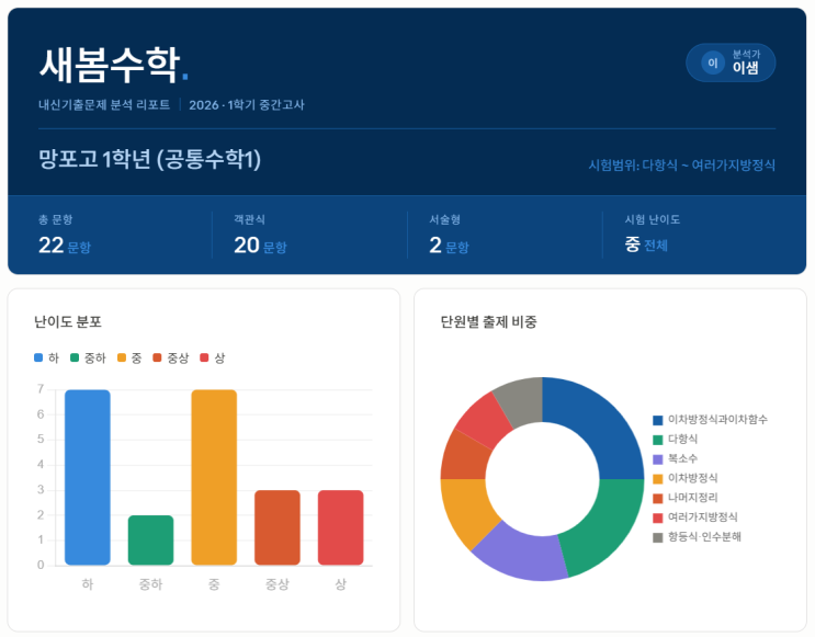 [2026][망포고2][1학기중간고사 공수1 시험지 분석][새봄수학]