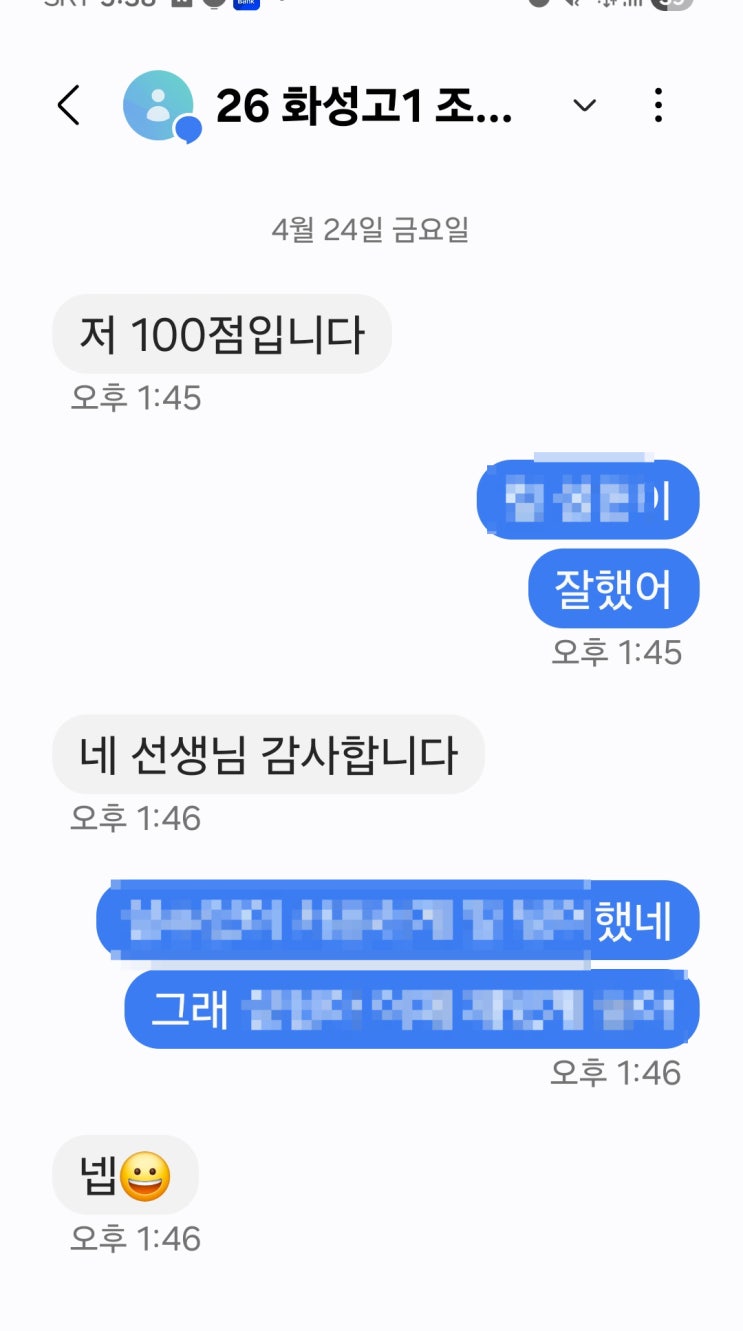 화성고 1학년 O현이가 이번 국어 중간고사에서 100점을 맞았습니다. 100점이 학교에 1명이라고 하니 더욱 쉽지 않았을텐데 아주 잘했습니다. 수업에 워낙 성실하게 참여했고 시험이 가까운데도 밝으면서도 단단한 모습이 보여서 조금은 기대가 되었습니다. 열심히 한 것에 대해 보상을 받았다는 게 참 다행입니다. <img src="https://blogthumb.pstatic.net/MjAyNjA0MjZfMjc3/MDAxNzc3MTk0MTY2NjEw.GdDrQIlsDnrHqdtjAkIz8Z-Nanfevpk5bpMuC0rQh8kg.uOBnpdHDosSXRIG5WHd69r4cMHJY9rFhVGMi3IXrUy8g.JPEG/%C1%B6%BC%BA%C7%F6.jpg?type=s3" />