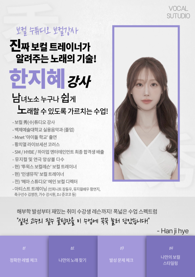 [수원 영통 망포 보컬학원] 보컬 수튜디오 한지혜 보컬강사님