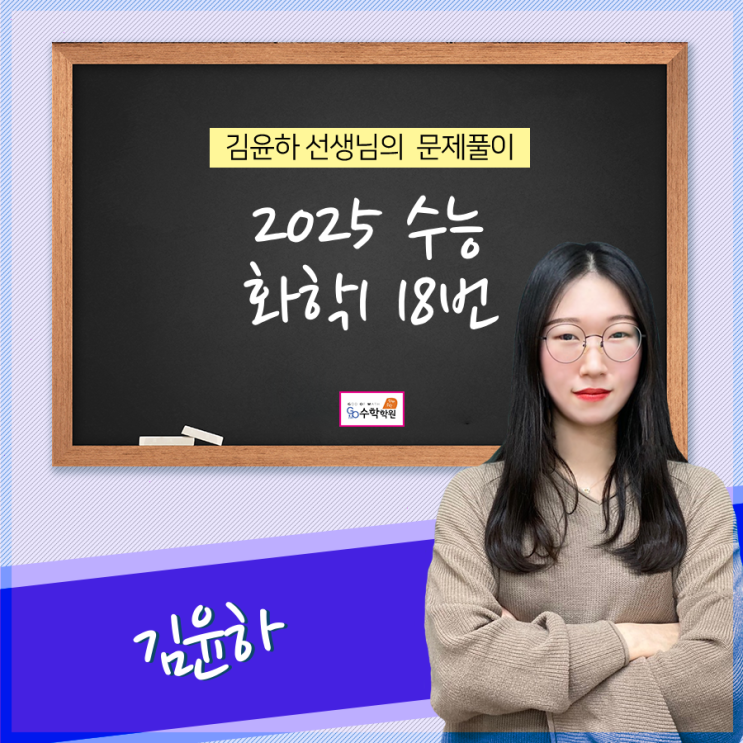 2025 수능 화학1 18번 영통수학학원 곰수학학원 -김윤하 선생님의 문제풀이- *선생님이 직접 설명하는 것처럼 구어체를 사용하였습니다.* 문제 표는 2xM HA(aq), xM H2B(aq), yM NaOH(aq)의 부피를 달리하여 혼합한 수용액 (가)~(다)에 대한 자료이다. (단, 수용액에서 HA는 H+과 A-으로, H2B는 H+과 B2-으로 모두 이온화되고, 물의 자동 이온화는 무시된다.) 풀이 이 문제는 중화반응 문제이다. 각 용액에 들어간 이온의 수를 표로 정리하면 다음과 같다. (가)는 산 수용액만을 혼합했으므로 가장 많은 양(mol)의 이온은 H+이다. 따라서 (가) 혼합 수용액에 존재하는 모든 이온수의 비율 3 : 1 : 1= H+ : A- : B2-이며, 각 이온수를 상대량....... <img src="https://blogthumb.pstatic.net/MjAyNjA0MTVfMjIy/MDAxNzc2MjI2NDAzNjI1.tMPOjeWopg8z6tInXAqO9Kss0kL_vhWXgm-rczoXdT8g.KGlLpnDogf5uqmJ2yHin6-ln_Oihm-prdplLNAMiHPQg.PNG/%BD%E6%B3%D7%C0%CF_%C0%B1%C7%CFt.png?type=s3" />