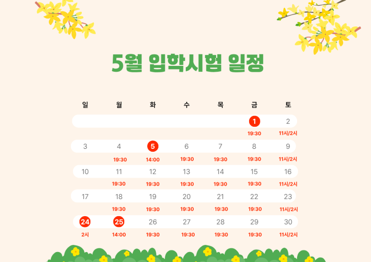 [광교 청담어학원] 여름학기 대비 무료 입학시험 일정 안내