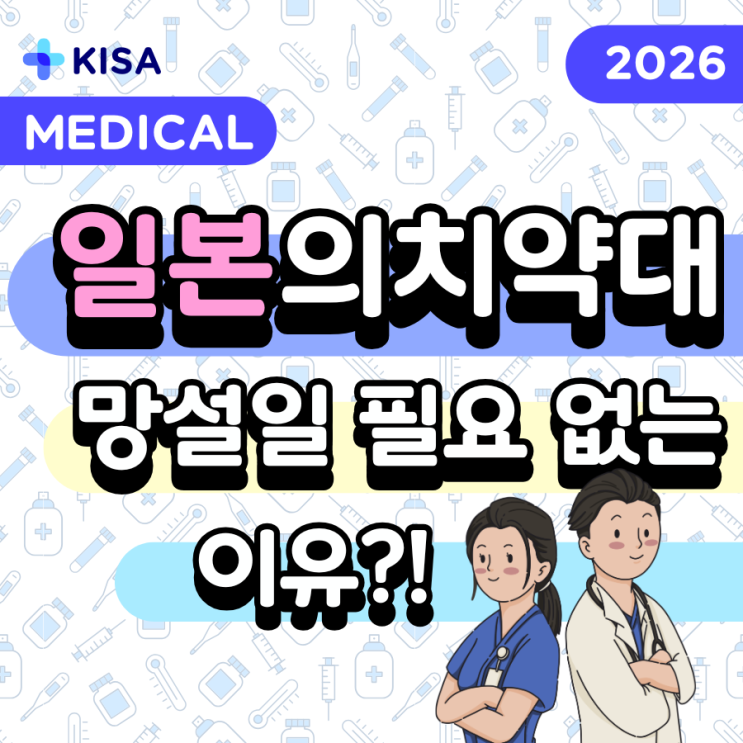 일본 의대, 치대, 약대 진학을 고민하고 계신가요? “가능할까?” “어떻게 준비해야 할까?” 막연한 고민에서 벗어나 정확한 입시 구조와 전략을 이해하는 것이 가장 중요합니다! -------------------------------------------------- 안녕하세요 영남권 일본유학 대표 기관 한일유학교류협회 KISA입니다 Kankoku nIhon Study abroad Association 일본 의치약대 입시를 준비하는 수험생을 위해 KISA 한일유학교류협회에서 일본 의치약대 입시설명회를 개최합니다. KISA 메디컬 일본 의치약대 입시설명회 부산 / 창원 / 마산 / 울산 4개 지역 동시 진행 일정 2026년 5월 2일(토) 오후 1시 ~ 일본 의치약대....... <img src="https://blogthumb.pstatic.net/MjAyNjA0MjFfMjY5/MDAxNzc2NzY0NDc1ODQ3.IwOrDxrIAgZTgfrhG9M56Tck5CGU-sUahry-pqG-X5gg.1xyKsHRs8yIE_wTHRFkGri9pUddKsE4R_tYk1AjtuO4g.PNG/%B8%DE%B5%F0%C4%C3_KISA_%C1%F6%BF%AA%B0%F8%B5%BF_%C0%CF%BA%BB_%B4%EB%C7%D0_%C0%D4%BD%C3%BC%B3%B8%ED%C8%B8_%C0%C7%C4%A1%BE%E0_%B8%DE%B5%F0%C4%C3_%28900_x_900_px%29_%2811%29.png?type=s3" />