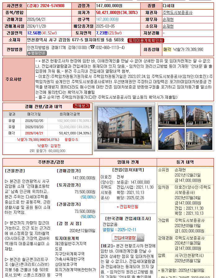 [2026-13호 낙찰소식]김*진님 인천 검암동 다세대주택 낙찰