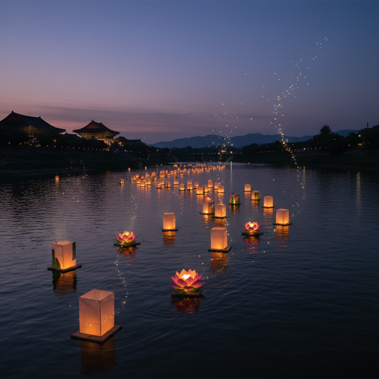 2027년 수특 이수익 유등제 정리 및 해설 유등제를 한번 보고 싶다.(화자의 소망이 직접적으로 제시됨.) 해 저문 강가로 나아가 머나먼 행렬을 이루면서 밝은 연등 불빛 흘러가는 그 조용한 눈물의 제의를 보고 싶다.(보고 싶다는 표현을 반복하여 유등제를 보고 싶어 하는 화자의 소망을 강조함.) ▶1연: 유등제를 보고 싶은 간절한 소망 [ 나도 함께 따라갈 수 있다면 얼마나 더 좋으랴. ]([ ]: 연등을 따라가고 싶은 화자. 내적 갈등과 고민에서 벗어나고 싶어 하는 화자의 소망을 ‘~면’과 같은 가정의 상황으로 드러냄.) [ 세상의 온갖 설움(고통스러운 삶)을 푼 몸이 두둥실 물 위에 떠서 ]([ ]: 설움을 풀고 연등처럼 떠 가는 모습) 한 줌....... <img src="https://blogthumb.pstatic.net/MjAyNjA0MjJfMjk3/MDAxNzc2ODM3OTY4Mjkx.DDaWt0thdm0YJvKqHeHw2gBr15B5PUFEkeQizNCeoAog.O9O2rBWREEQ7xEsFxf-IVxQprgE-gGOc9Qo9nHybQz8g.PNG/AIDrawing_260422_fdadc70f-d9a1-4d78-8f74-b2674a70b02a_0_MiriCanvas.png?type=s3" />