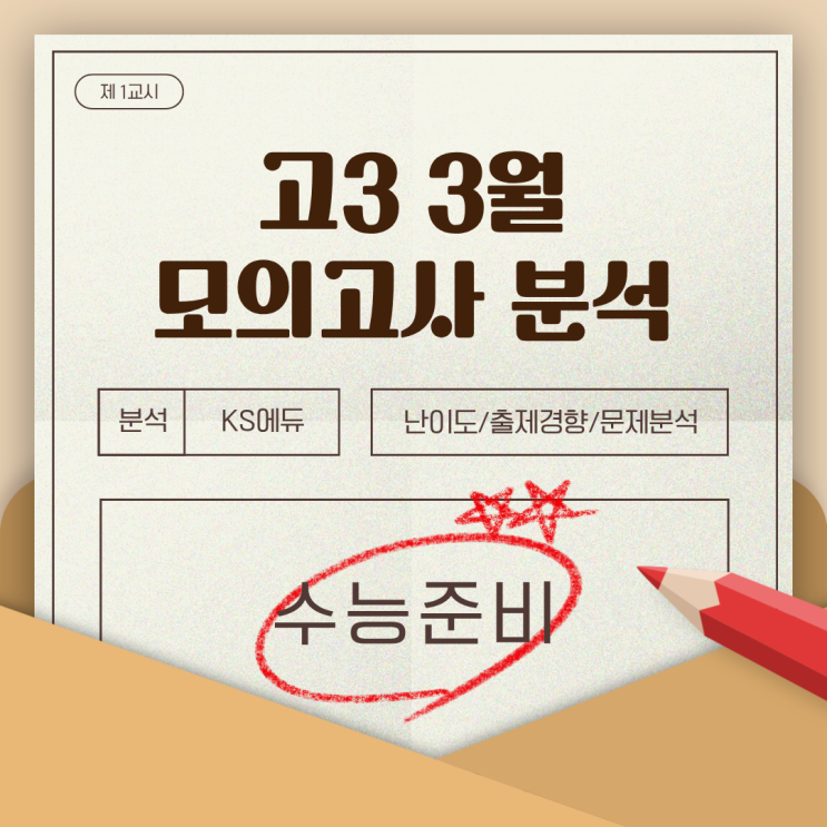 안녕하세요 KS에듀 국어 과학 학원 입니다 오늘은 3월 모의고사 분석을 하도록 하겠습니다. 수능을 준비하는 고등학교 3학년을 위한 분석입니다. 고3에게 3월 모의고사는 단순한 첫 시험 이상의 의미를 가집니다. 현재 자신의 위치를 확인하는 동시에, 앞으로의 학습 전략을 세우는 기준이 되는 시험이기 때문입니다. 이후 학습 방향을 결정하는 중요한 출발점이라고 할 수 있습니다. 국어 영역은 전반적으로 체감 난이도가 상승한 시험으로 평가됩니다. 특히 독서 영역에서 지문의 길이와 정보량이 크게 증가하면서, 단순한 독해 능력보다 지문의 구조를 빠르게 파악하는 능력이 요구되었습니다. 실제로 학생들 사이에서는 “독서에서 시간이 부....... <img src="https://blogthumb.pstatic.net/MjAyNjA0MTNfMTE5/MDAxNzc2MDgyMjkzNzg4.cC30clz9ZsD3uUE6FjYoyiaA3y5xly01ZW7d7lpx5l8g.iiJkAiclS3HHyRsXymOd-T9zBon-p_ZV66e2nNNhiVAg.PNG/5.png?type=s3" />