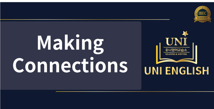 안녕하세요 유니영어교습소 Uni English 입니다. 사고력 확장에서 관점을 전환하고 구조를 완성하면 끝일까요? 관점 전환을 통해 생각을 하고, 구조화를 통해 글의 형태를 만들었다면, 이제 그 생각을 더 깊이있게 만들어야합니다. 이때 필요한게 Connection, 연결이죠. 문장도 잘 썼고, 구조도 잘 갖춰졌는데, 글을 읽어보면 어색한 경우가 꽤 빈번합니다. 가장 큰 이유는 바로 연결의 부재인데요. 문장의 구성은 잘 갖추었지만, 문단의 역할은 하지 못하는 겁니다. Exercise is good. It helps people stay healthy. Students should exercise every day. 틀린 문장도 없고 글의 순서나 구조에도 문제가없어요. 하지만 읽으면 어색하죠. 그래서....... <img src="https://blogthumb.pstatic.net/MjAyNjA0MjNfMTQ5/MDAxNzc2OTUyMjI1Nzgz.kqSUadD4sXTybdk9neIUpFrarKVCClZXVustcSy-wbQg.GoSvp-GM7yPH7Jke7-wZH1IpZCLAl8RiUQn1uOZig7Qg.PNG/%BF%AC%B0%E1.png?type=s3" />