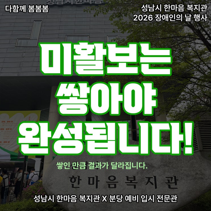 안녕하세요~ 씨앤씨 미술학원, 분당 예비 입시 전문관입니다! 홍대미대 준비! 특히 홍대미대 미활보 활동을 준비하면서 혹시 이런 생각 해보신 적 있으신가요? 분명 같은 활동을 했는데, 왜 누구는 합격하고 누구는 아닌 걸까? 미대 입시에서 중요한 요소 중 하나는 단순한 실기력이 아니라 어떤 활동을 했고, 그것을 어떻게 연결했는지 이 차이가 홍대미대 미활보 활동에서의 평가를 바꿉니다. 특히 외부 활동과 미술을 연결하는 경험은 홍대미대 미활보 활동에서 매우 중요한 요소입니다. 성남시 한마음 복지관 '다함께 봄봄봄' 행사 성남시 한마음복지관에서 진행하는 다함께 봄봄봄 행사는 지역사회와 함께하는 문화 · 체험 행....... <img src="https://blogthumb.pstatic.net/MjAyNjA0MThfMTcz/MDAxNzc2NDgyMjY1NDcx.-hx_oct_o05pelNF-iJb5IVEXdxEpaYt7J3ONkTHhMcg.Qd_UHM8ijsYfBqodt7ZnjOSd53KC47E23Jt96zJEXi4g.JPEG/%BE%BE%BE%D8%BE%BE%B9%CC%BC%FA%C7%D0%BF%F8_%BA%D0%B4%E7%BF%B9%BA%F1%C0%D4%BD%C3%C0%FC%B9%AE%B0%FC_%BA%B8%C1%A4%C0%D4%BD%C3%B9%CC%BC%FA%C7%D0%BF%F8_%BA%C0%BB%E7%C8%B0%B5%BF%C2%FC%BF%A9_%B9%CC%C8%B0%BA%B8%B4%C2%B4%A9%C0%FB%B5%C8%B0%E6%C7%E8%C0%CC%C1%DF%BF%E4%C7%D5%B4%CF%B4%D9.jpg?type=s3" />