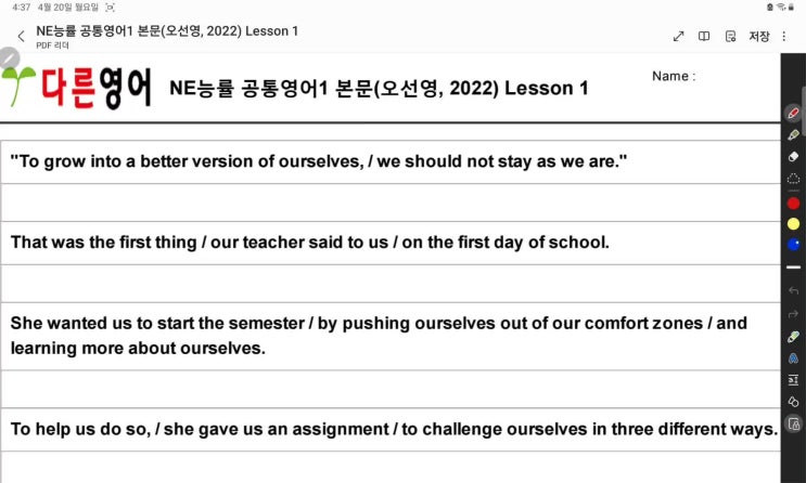 #판교고1학년내신 교과서 1과 본문 수업입니다. 집중해서 학습하고 암기할것 하고 문제 풀어봅시다. <img src="https://phinf.pstatic.net/image.nmv/blog_2026_04_20_840/xWDDQLFRcU_01.jpg?type=f480x480" />