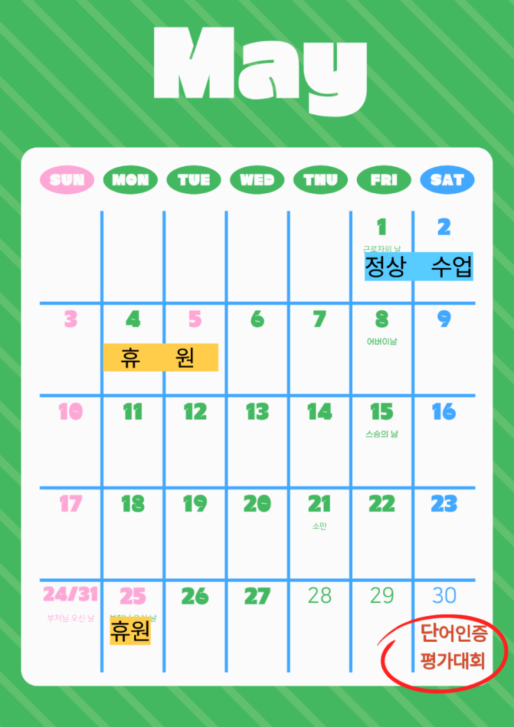 5월 수업 일정 안내 by답십리 전농동 청솔해법영어