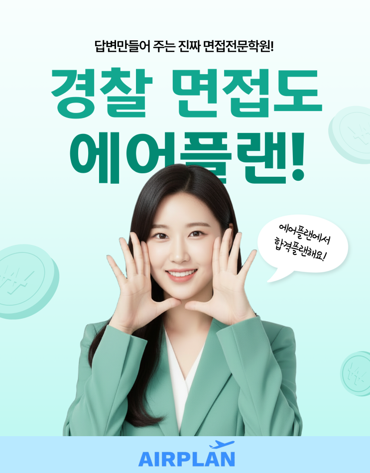 답변은 본인이, 면접은 스터디로 각자도생!경찰면접도 달라져야 합니다![대전 경찰 면접학원] 에어플랜은 경찰면접도 확실하게 가르칩니다!! 경찰 면접을 앞둔 여러분께 묻습니다. 대형학원이라 불리우는 면접방식이 정말 정답이라고 생각하시나요? 대전 경찰 면접학원 에어플랜에서 가장 근본적인 경찰면접 코칭의 문제점 몇개만 솔직하게 지적해 보려고 합니다. 첫번째는 왜? 개인사에 대한 스토리텔링과 답변정리에 대한 중요한 컨설팅을 해주지 않으시나요? 예전에도 지금도 가이드라인 수업으로 이렇게 하시면 되세요하고 쉽게 가르치실 생각이십니까? 이 이유가 1대 다수가 듣는 방식으로 경찰 필기 시험을 준비하다보니 어쩌면 지원자들도....... <img src="https://blogthumb.pstatic.net/MjAyNjA0MThfMTQw/MDAxNzc2NDg3ODc0NjQ3.532IBXS5FsHR-3dRC-ZXAyvNE81pkXotdjFVMzWsMwsg.6QtrX135OPfM_AJN5YSNUePtJWiUHWjMRIMzviXzk2Yg.PNG/%3F%A0%9C%EB%AA%A9%EC%9D%84_%3F%9E%85%3F%A0%A5%3F%95%B4%EC%A3%BC%EC%84%B8%3F%9A%94._%2813%29.png?type=s3" />