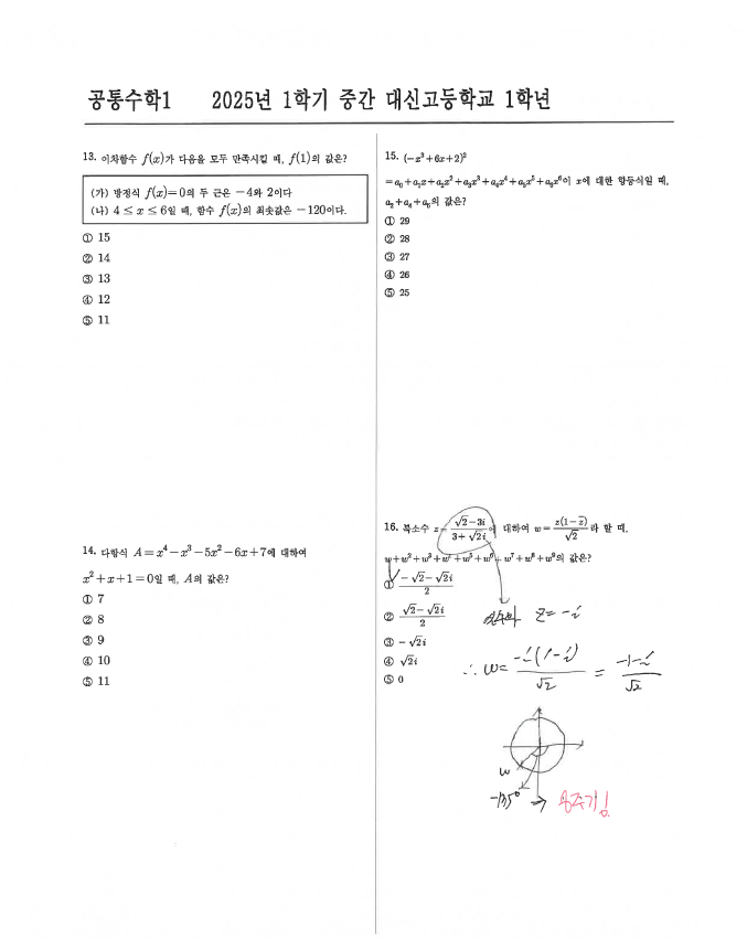 [대신고1] 2025년 1학기 중간 공통수학1 손풀이