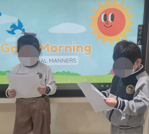 Good Morning! Good Afternoon! Good Evening! 안녕하세요. FIS International 유치부 입니다. 유치부에서는 다양한 생활 속 주제를 바탕으로 아이들이 영어를 자연스럽게 익히고 표현할 수 있도록 International Etiquette 활동을 진행하고 있습니다. 이 시간은 단순히 예절을 배우는 것을 넘어 실제 생활에서 사용할 수 있는 영어 표현을 직접 말해 보고 연습하며 아이들의 영어 스피킹 자신감을 키워 가는 의미 있는 시간입니다. 함께 보실까요? 시간에 맞는 인사를 배워요 International Etiquette 시간 Good morning, Good afternoon, Good night 하루 중 서로 다른 시간대에 사용하는 인사 표현을 배워 보았습니다. 아이들은 짝과 함께 스....... <img src="https://blogthumb.pstatic.net/MjAyNjA0MTRfMjM1/MDAxNzc2MTIzOTkwOTI5.lGu0V8DQXe097gpWK6kAeYAV1qoCOFnC7b5-eMMrBPIg.MrNLOZLcJpAykFezCaNFBmntRCNmDUSJV30gXjMeBMYg.PNG/1.png?type=s3" />