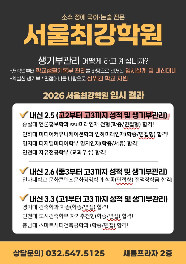 3시30분 학교 앞에서 픽업 차량 운행 입시경력 20년 설원장의 국어 직강 (매주 목요일) 16년 경력 권쌤 수학, 강쌤 영어 내신을 완벽히 대비합니다. 수업 중에는 절대로 상담하지 않습니다. 상담 신청서를 남겨주시면 순차적으로 연락 드립니다. https://naver.me/G9phf3xG 010-7745-1190 문자 / 전화 상담 <img src="https://blogthumb.pstatic.net/MjAyNjA0MjFfNTQg/MDAxNzc2NzM0ODE5MDYy.CkUMP1xVQbOg6LL9XoD9tmvguscmFc0yj3WmApPhDhUg.O5BqArMyR7JAKMr8LvorjysaEOqPUHxQKOxFkJUF5nsg.JPEG/1.jpg?type=s3" />