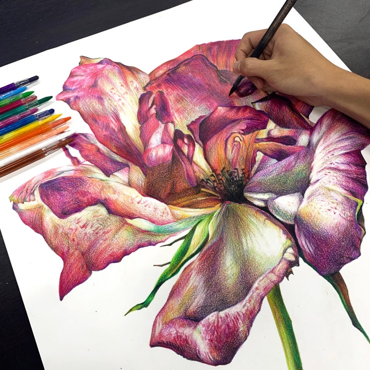 디자인 입시 인기 종목 중 하나인 "기초소양평가" 최상위 대학진학을 위한 제3미술학원 학생들의 열정수업!! 건식재료를 활용한 그림 연습 과정을 소개합니다. 기초소양평가는 물을 사용하지 않고 건식재료만으로 표현하는 방식으로, 연필·색연필·마카 등을 활용하여 형태와 질감, 명암을 정교하게 표현하는 훈련 과정입니다. 이러한 연습은 관찰력과 표현력을 동시에 향상시키는 데 매우 중요한 단계입니다. 기초소양평가 예비반 준비 수업 건식재료 연습-꽃을 그리며 혼색연습 따뜻한 색감을 중심으로 한 꽃 표현입니다. 붉은 계열과 노란색을 자연스럽게 혼합하여 풍부한 색감을 만들어내고 있으며, 꽃 중심부의 어두운 명암 대비가....... <img src="https://blogthumb.pstatic.net/MjAyNjA0MjNfMTQ5/MDAxNzc2OTQ2NDgzOTIw.F6Yaeyp4zKUPxE1MMaHwBC-V9_fkAI7p0Dzqw1bvOC0g.g24KWFBXnRBJsL16OAtgvJqLrM7NaH7Elxd-qBLs6LYg.JPEG/KakaoTalk_20230708_191114704_23.jpg?type=s3" />