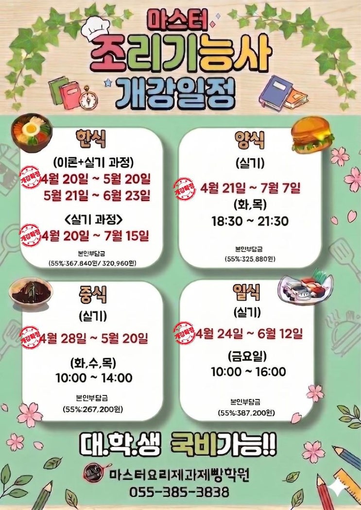 반갑습니당~ 마스터요리제과제빵학원 이유리훈련교사입니다! 이번 한식반도 중도탈락없이 다들 넘 좋은 분위기로 종강을하였습니당 #한식조리기능사 #한식조리기능사필기 #한식조리기능사실기 #한식조리사필기시험 #양산국비지원 #양산국비지원자격 #홍합초 #칠절판 #더덕생채 #비빔밥 #무생채 #실전모의평가 #실전처럼 #조리복입고 #마스터군단 #비빔밥전처리 #잡채 #도라지생채 #마스터박사부 #마스터요리학원 #마스터요리제과제빵학원 #양산국비지원 #양산국비 #양산국비지원자격 #양산국비제과제빵 마스터에선 다양한 커리큘럼이 준비되어있습니당!!! 많관부 문의 ☎️055-385-3838 마스터요리제과제빵학원 <img src="https://blogthumb.pstatic.net/MjAyNjA0MTlfMjI2/MDAxNzc2NTk4MTM0ODU5.OJ0iw3FubyBkKhQK6AnYg-UV_um_0m16JYIxfjGrdnYg.4HtijsXBlPbw3XOC9-IS5BLmihtd5i1K5rPs4-xa630g.JPEG/1776598082986.jpg?type=s3" />