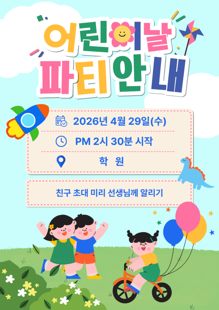 소하동 영어학원, 2026년 어린이날 기념 학원 파티 및 5월 학원 학사 일정 안내