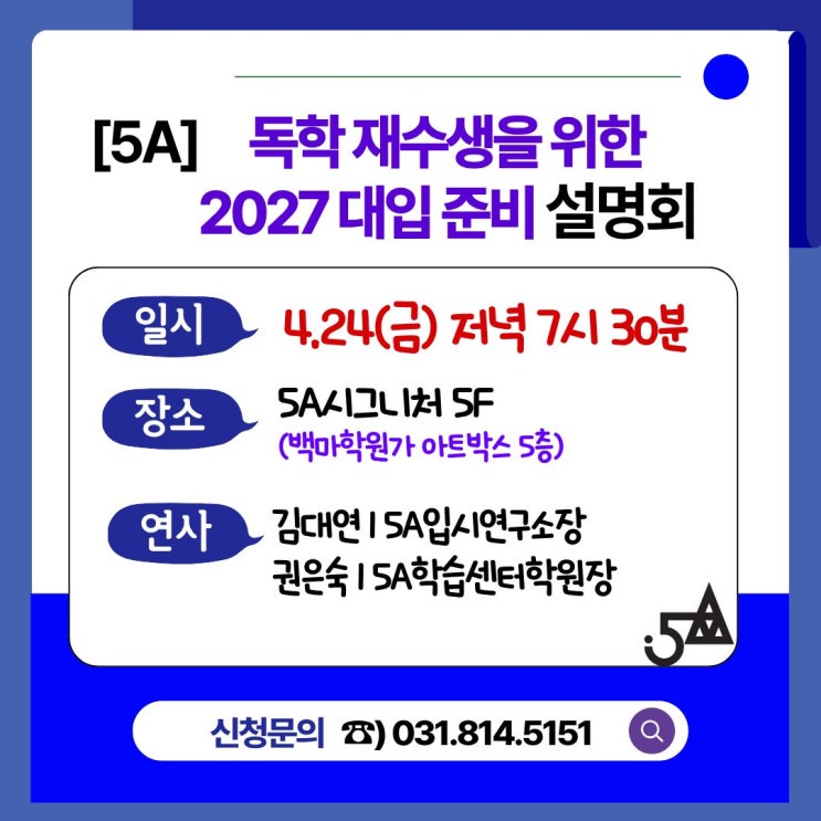 [5A학습센터] 독학재수생을 위한 2027 대입 준비 설명회