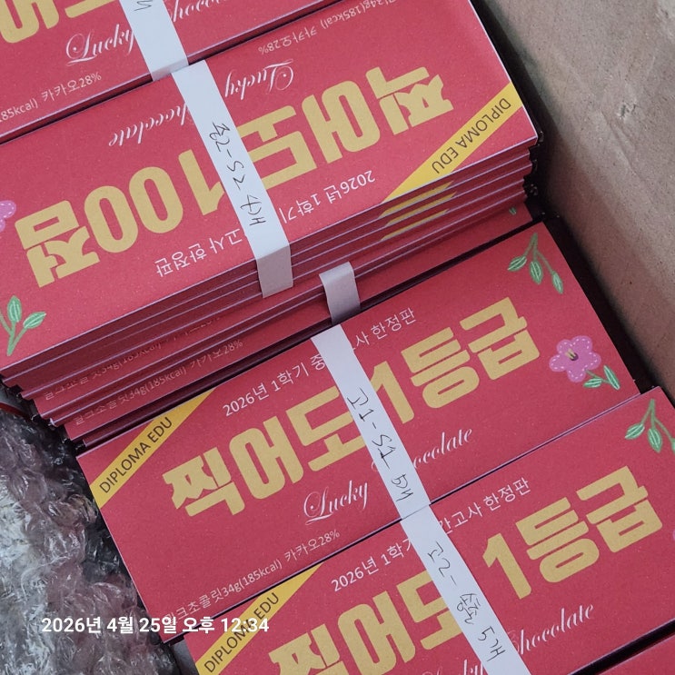 학원에서 준비한 한정판 초콜릿! 이름부터 픽업드 1등급 초콜릿. 먹으면 1등급 보장? 그건 수업, 숙제, 오답, 시험대비가 해주고요. 이 초콜릿의 역할은 오직! 시험 전날 당 충전. 시험 당일 멘탈 충전. 그리고 학생들한테 한마디 듣기. “쌤, 이거 먹으면 진짜 1등급 돼요?” 얘들아. 먹기만 하면 곤란하고, 풀어야 된다. 아주 많이. 디플로마는 오늘도 문제도 준비하고, 간식도 준비하고, 멘탈도 챙깁니다. 중간고사 끝까지 가보자. 1등급 기운은 넣어줄게. 점수는 같이 만들자. 문의/예약 전화 상담 / 네이버 톡톡 / 네이버예약 #디플로마학원 #대전수학학원 #송촌동수학학원 #대덕구수학학원 #중등수학 #고등수학 #중간고사대비 #수학내....... <img src="https://blogthumb.pstatic.net/MjAyNjA0MjVfMzYg/MDAxNzc3MDg5MzI3NDg3.5Ubir1oMNa9Bt0WwPCMceLjM9PeEv1gXY3w04VLF4cMg.nMqDAp3d2-Qlj1SlmOimPOp69GzKJhVBLyPmy_hiBD4g.JPEG/KakaoTalk_20260425_123754509.jpg?type=s3" />