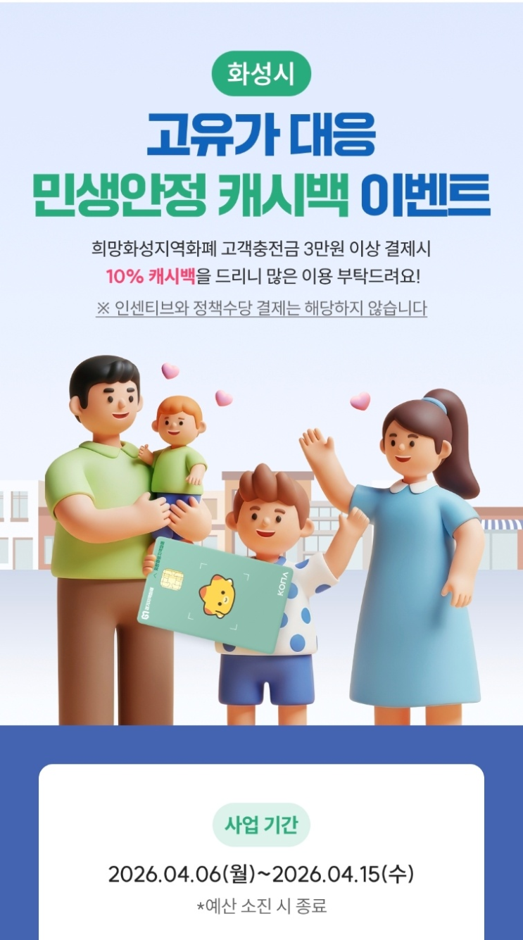 화성시 지역화폐 10% 캐시백 혜택 ~4월 15일 (수)예산소진시까지