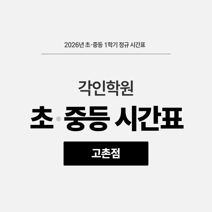 [각인학원 고촌] 2026년 초·중등 1학기 정규 시간표