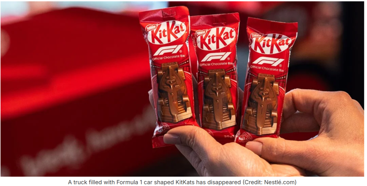 A truck carrying over 400,000 KitKat bars disappeared on its way from Italy to Poland. At first, people thought it was a joke because it happened near April Fools’ Day—but it was real. Let’s find out what happened in this unusual chocolate heist! 40만 개가 넘는 킷캣을 실은 트럭이 이탈리아에서 폴란드로 가던 중 사라졌습니다. 만우절 직전이라 장난처럼 보였지만, 실제 사건이었습니다. 이 흥미로운 초콜릿 사건을 함께 알아볼까요? ✨ Easy A truck carrying many KitKat chocolate bars disappeared while going from a Nestlé factory in Italy to Poland. There were more than 413,000 KitKat bars ....... <img src="https://blogthumb.pstatic.net/MjAyNjA0MTZfMjY1/MDAxNzc2MzMwODM5MzU0.TK3NTNLlYTD2qpPIOMLKpERHNvCOiFliNDIS19j5sUkg.1hh_VXi50SawSjEs0PrHS83lkDV5hOH_VyFP33aa-0wg.PNG/Screenshot_2026-04-16_152939.png?type=s3" />