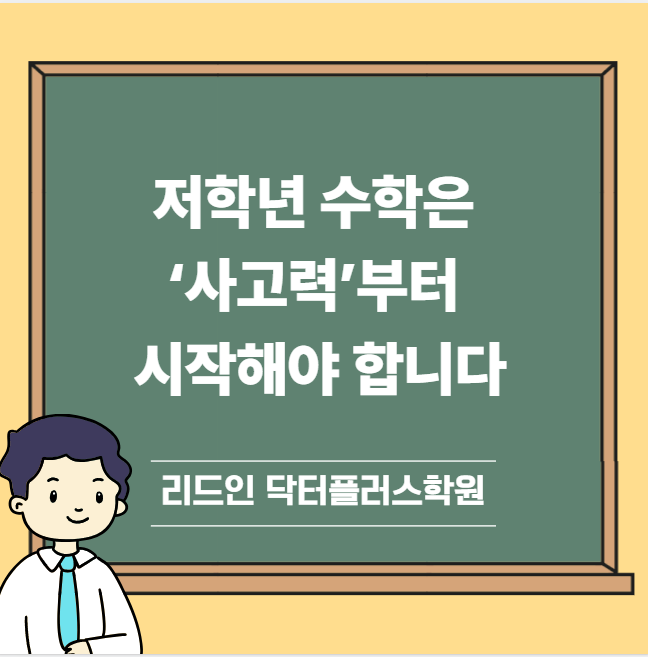 안녕하세요. 유성구수학학원 리드인 닥터플러스학원입니다. 많은 분들이 수학을 시작할 때 먼저 떠올리는 것은 빠른 계산과 반복 연산입니다. 물론 연산도 중요하지만, 저학년 시기에는 그보다 먼저 생각하는 힘, 즉 사고력을 키우는 것이 훨씬 더 중요합니다. 이 시기에 연산만 반복하게 되면 아이는 문제를 ‘푸는 것’에 익숙해질 뿐, ‘이해하는 것’에는 약해질 수 있습니다. 반대로 사고력 수학을 먼저 경험한 아이는 문제를 스스로 해석하고 다양한 방법으로 접근하는 힘을 자연스럽게 기르게 됩니다. 특히 초등 1~2학년은 수학에 대한 첫 인식이 만들어지는 시기입니다. 이때 수학을 어렵고 반복적인 과목으로 받아들이게 되면 이후 학습....... <img src="https://blogthumb.pstatic.net/MjAyNjA0MTdfMTQ0/MDAxNzc2NDExMjY2NzAw.p1sKMvG4xPLS18wwm3boimpqWSLCiCM-cm81ErZCvQsg.EzV218o3yQUxLcYOaX378hE5f59lRPJmt2J3F7KfXvcg.PNG/image.png?type=s3" />