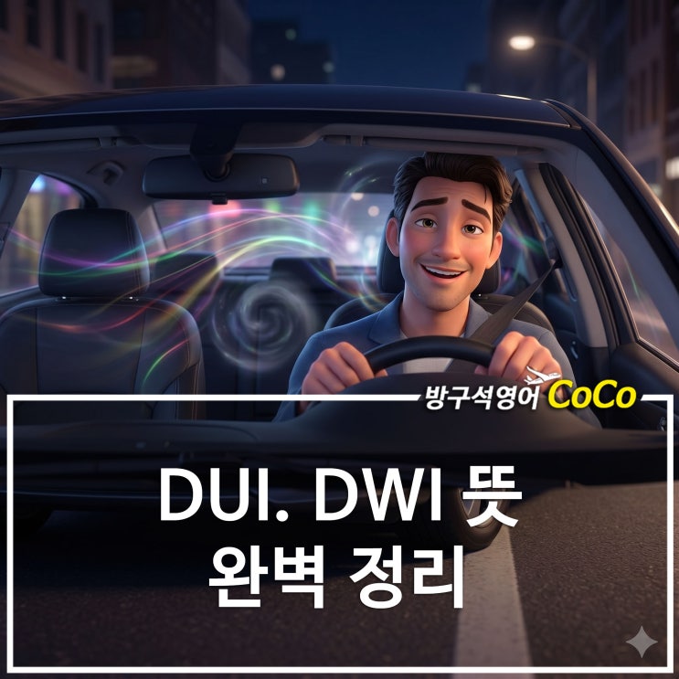 안녕하세요! 여러분의 영어 호기심을 속 시원하게 긁어드리는 방구석영어 코코입니다! 다들 오늘도 활기차게 보내고 계신가요? 미드나 할리우드 영화, 혹은 해외 팝스타들의 아찔한 가십 기사를 읽다 보면 경찰차가 '삐용삐용' 출동하면서 심심치 않게 등장하는 알파벳 세 글자가 있죠? 바로 DUI 와 DWI 입니다. '어? 저게 도대체 무슨 뜻이지? 무슨 비밀 암호인가?' 하면서 궁금해하셨을 여러분을 위해! 오늘제 가 자세히 알려드릴게요! DUI 뜻 내 정신이 내 정신이 아니야 먼저 DUI 뜻 부터 알아볼까요? DUI는 Driviing Under the Influence의 앞 글자를 딴 약자입니다. 단어 그대로 직역하자면 '영향(Influence) 아....... <img src="https://blogthumb.pstatic.net/MjAyNjA0MjRfMzYg/MDAxNzc2OTk0NTAzMDkx.mUaxDV0D-V2Lm86MDg4I-ui6fkk6CVJXTzMnjdGHDuIg.EdvB8jPg-3Jn13YnvuKhj4LVP9_gfCQmf84N5Ov1UJ8g.JPEG/dui%B6%E6dwi%B6%E6%BF%B5%BE%EE%C8%B8%C8%AD%C7%A5%C1%F6.jpg?type=s3" />