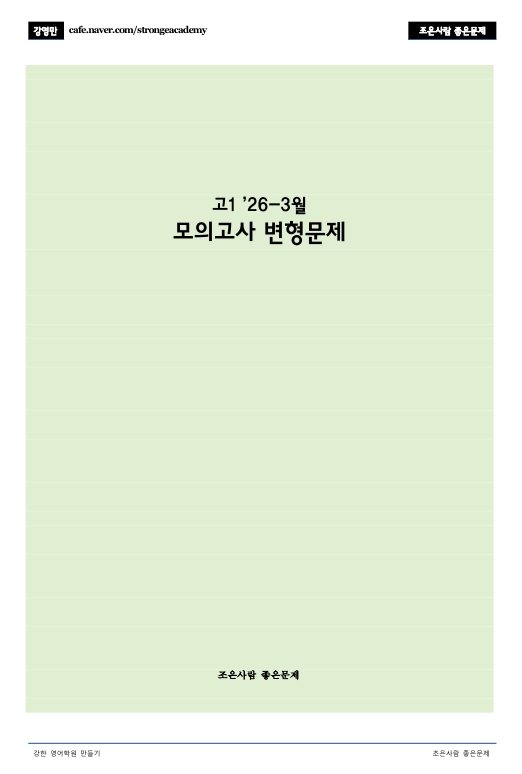 2026학년도 고1 3월 모의고사 변형문제 자료가 완성되었습니다. 이번에도 함께 수고해주신 전국의 원장님들께 감사의 말씀 전합니다. 이 자료가 전국의 학생들에게 공부하는데 조금이나마 도움이 되었으면 합니다. <img src="https://blogthumb.pstatic.net/MjAyNjA0MDhfMjgw/MDAxNzc1NjIyMDk2ODA2.XKob9Im3fNIg5vZXa5T-nqsAphRf8-W26eRZU2jIlzEg.__CdV7jgE4gW9xUAGShVF6ZFmW3GJ3RTZDz7bWYOHOog.JPEG/%B0%ED1%BA%AF%C7%FC.jpg?type=s3" />