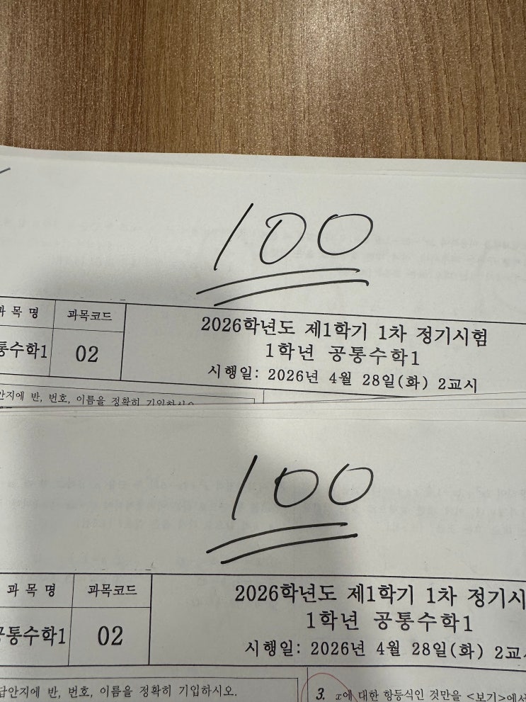 2026년 1학기 고림고1학년, 고림고2학년 수학 전교1등 만점자배출