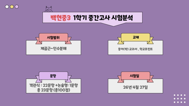 용인 백현중 수학 26년 1학기 중간고사 시험 분석|제곱근부터 인수분해까지, 난이도는 중 수준 _ 백현중학교 수학
