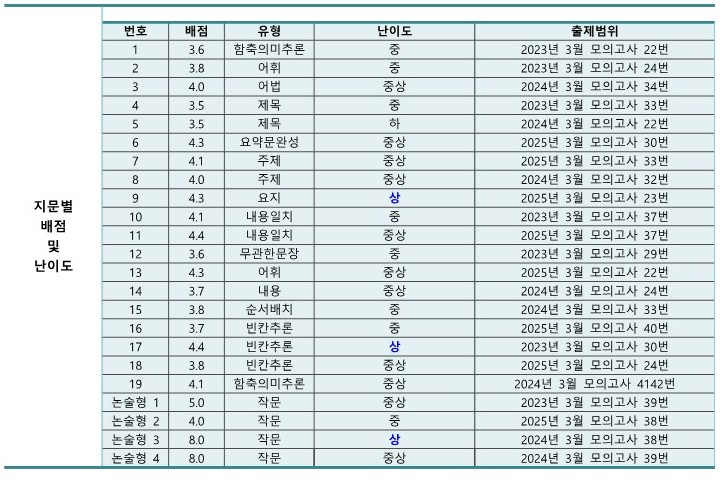 안녕하세요. 중고등학교 시험이 거의 마무리가 되어 가고 있습니다. 올해 첫 영어 시험을 진행한 동패,한빛고 1학년 학생들은 이미 영어 시험을 마무리 하여 시험 난이도 분석과 결과를 중간 보고 드립니다! 먼저 한빛고는 이번 시험 범위는 2023년 3월 모의고사 21, 22, 24, 29, 30, 33, 34 37, 39번 2024년 3월 모의고사 22, 24, 32, 33, 34, 36, 38, 39, 41-42번 2025년 3월 모의고사 22, 23, 24, 30, 31, 33, 37, 38, 40번 보시는 것처럼 한개의 모의고사만 집중적으로 학습하는 것이 아닌 여러 개의 모의고사에서 선생님께서 직접 선정하여 시험을 진행합니다. 고등학교의 내신 문제는 단순히 해석을 하여 문제를 해결하는 것에서 한단계 나....... <img src="https://blogthumb.pstatic.net/MjAyNjA0MjhfMjYy/MDAxNzc3Mzc4NTcwOTc3.hBMecc8SYMdh3M9WgGmILRPl4LJX77-59H66M6eE4JEg.xFYelq33Bh6a2-N4kIpDdOUADOZbJrdIqVOj1oK01YAg.JPEG/2026%B3%E2_1%C7%D0%B1%E2_%C1%DF%B0%A3%B0%ED%BB%E7_%C7%D1%BA%FB%B0%ED1_%B1%E2%C3%E2%BA%D0%BC%AE_2.jpg?type=s3" />