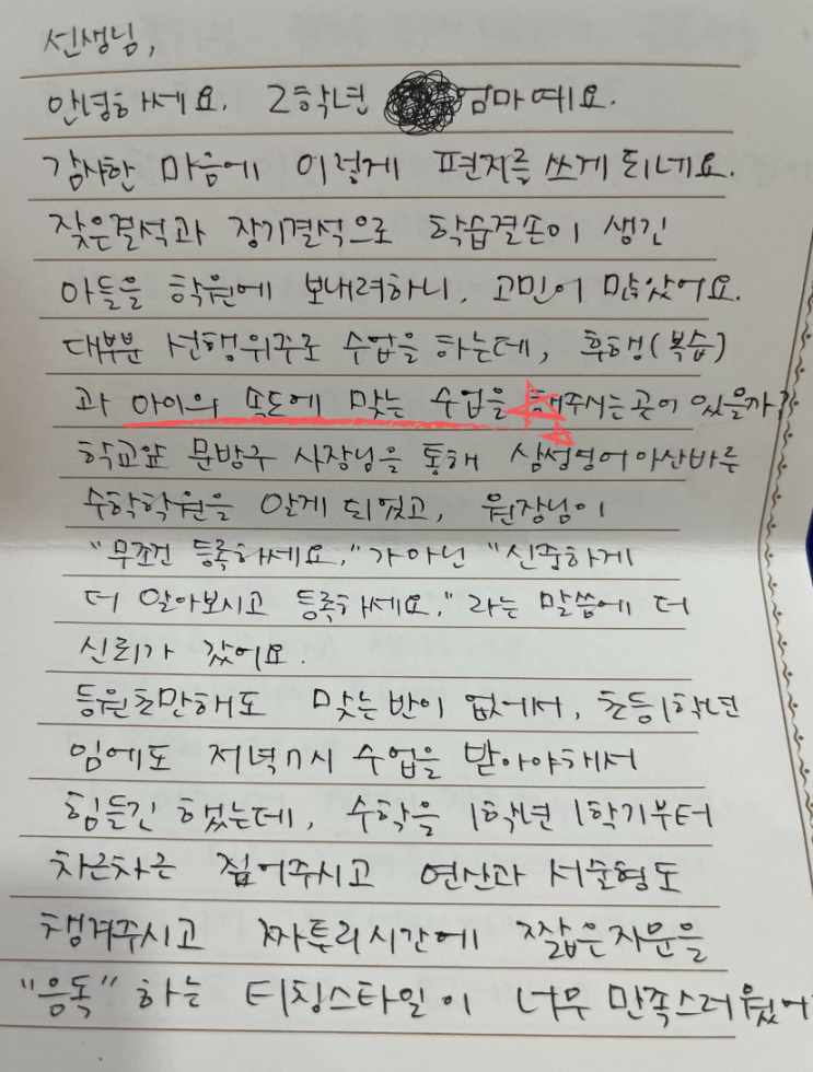 “아이 속도에 맞춰 주셔서 좋았어요” 처음 상담 때 어머님께서는 아이 학습에 공백이 생긴 부분을 많이 걱정하고 계셨어요. 그래서 무엇보다 중요하게 생각했던 건 속도를 맞추는 것보다, 아이의 흐름을 찾는 것이었습니다. “빠르게 나가는 수업이 아니라 아이 속도에 맞춰 진행해주셔서 좋았어요.” 어머님께서 이렇게 말씀해주셨던 것처럼 아산바른학원에서는 학생마다 다른 속도를 인정하고, 그에 맞춰 수업을 진행해요. 연산은 기초부터 다시 정확하게, 서술형은 문장을 이해하고 표현하는 연습으로, 짧은 지문은 소리 내어 읽고 이해하는 과정을 통해 하나씩 쌓아가고 있었어요. “이렇게까지 달라질 줄은 몰랐어요” 시간이 조금씩 지나....... <img src="https://blogthumb.pstatic.net/MjAyNjA0MjhfMTU4/MDAxNzc3MzU1ODU1NTQx.iVPliqqoRTMOmA33cMYSFdVGKPplpC_TvKdx6qSyUNog.Bttu9mSTF_CO3hYAxq9EA-hHi1JBtwWGoV44ZcG_ZRwg.PNG/1-.png?type=s3" />