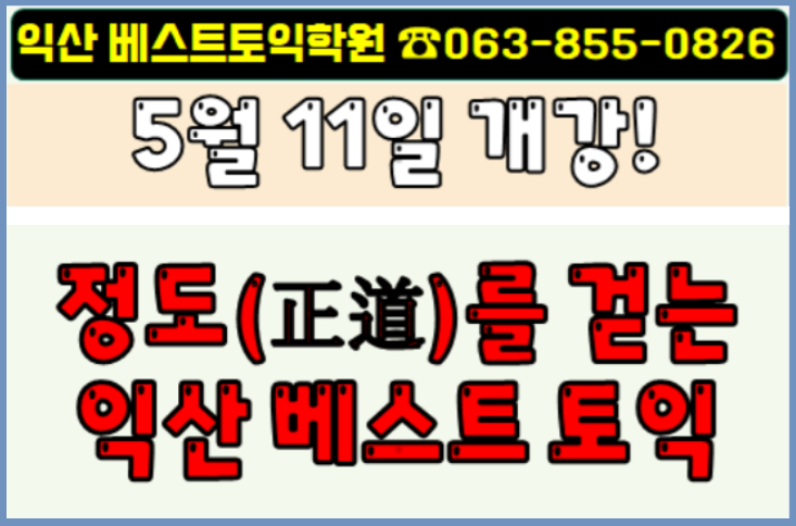 [익산토익학원] 베스트 토익 5월 11일 개강 및 문장 구조 분석 베스트토익과 함께하면 정확한 기본기를 습득하기 때문에 짧은 기간에 토익점수가 수직 상승하게 됩니다. #익산토익학원, #익산5월토익, #익산베스트토익학원, #익산토익전문학원, #익산토익과외, #베스트토익 #익산토익스터디, #익산토익공부, #익산토익수업, #익산토익학원수강후기, #토익시제, #토익품사,토익접속사, 토익전치사 #익산토익특강, #익산모의토익, #익산토익시험, #토익동사, #토익부사, #토익전치사, #토익접속사, #익산토익학원추천, #익산토익학원후기, #신동토익학원 #익산봄학기토익, #익산토익학원사전등록혜택 대충 두리뭉실한 게 아닌, 정확한 기본기야말로....... <img src="https://blogthumb.pstatic.net/MjAyNjA0MjlfMjc1/MDAxNzc3NDY2NDQ2Mzc0.-scSPFEcVhZRy-ZGpxSxII6OuBFG_e4t3XIqzAoakyUg.EJR9E5wAcruv9iW--nWxLFeWo8VvA-_UTV7rDkgpPzMg.PNG/%C1%A4%B5%B5.png?type=s3" />