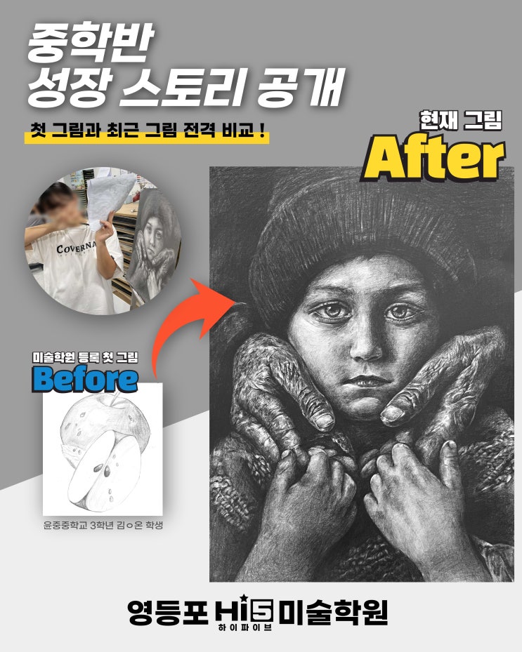 중학생 소묘 실력! 이렇게 달라집니다 ★영등포 Hi5 하이파이브 미술학원