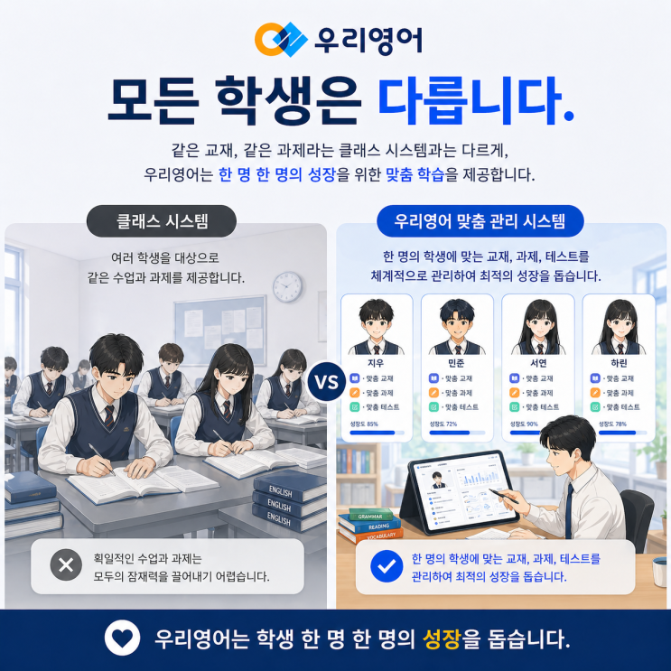 [목동 우리영어학원] 영어 성적을 올리는 전략, 학생마다 다릅니다 (우리영어 개별진도 시스템)