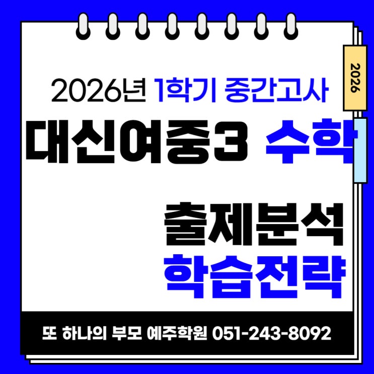 2026년 대신여중 3학년 1학기 중간고사 수학 시험 예주학원분석