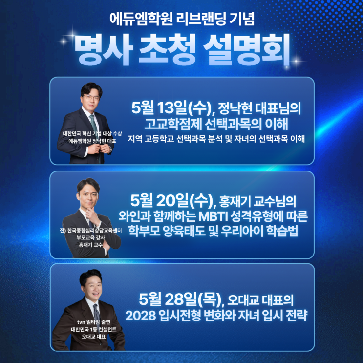 에듀엠학원 리브랜딩 기념 명사 초청 학부모 설명회 안내