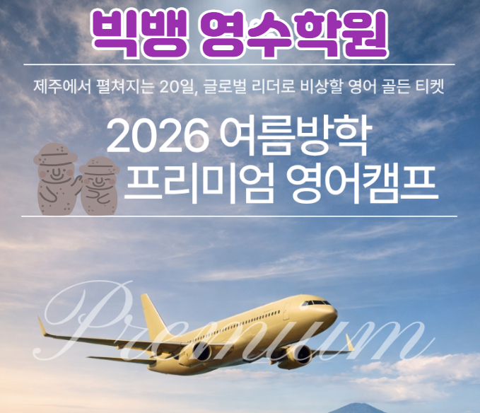 검단신도시 영수학원/빅뱅영수학원 2026 여름방학 제주 영어캠프 안내♣