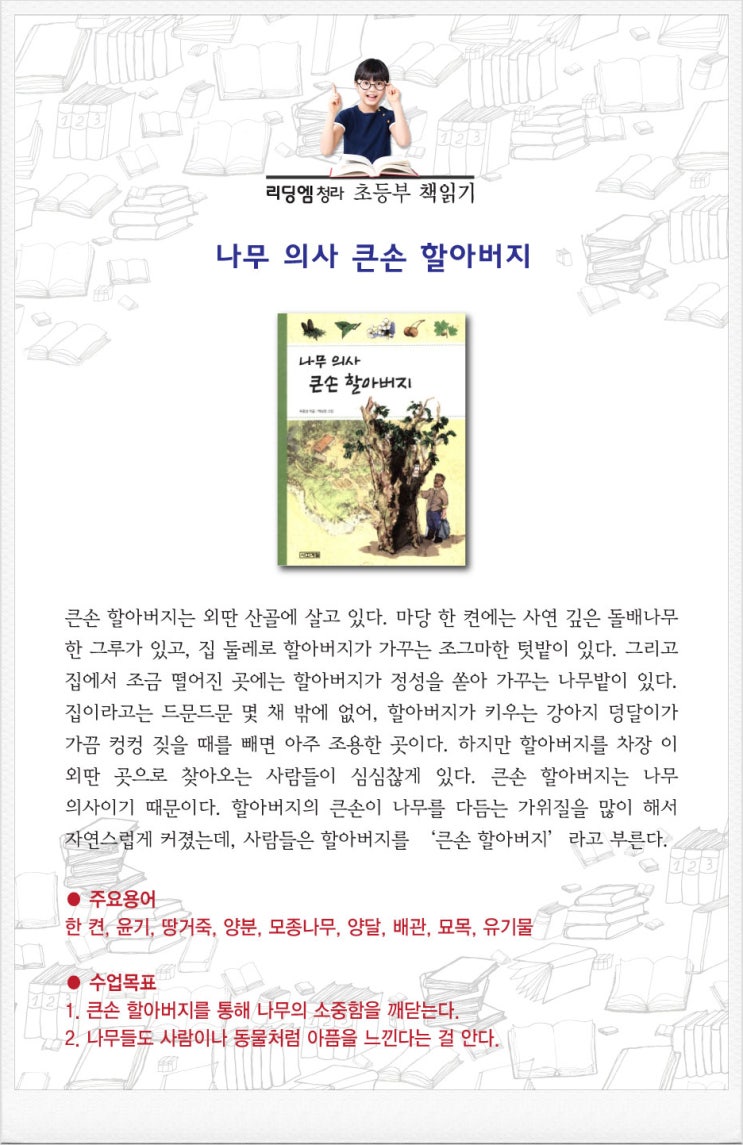 인천서구청라 초등독서논술학원 리딩엠인천청라 초등부 4학년 수업 '나무의사 큰손 할아버지' <img src="https://blogthumb.pstatic.net/MjAyNjA0MjVfMjM4/MDAxNzc3MDgxOTA4MDIz.BQNaMNhyUGtHs7TWxf2gr4pDObtyK9O1AEzp2BsR4qcg.3t9aiup7HWx3H4bR5Mwrh_-3lDdaazw7GCTCK5goD0sg.JPEG/%C3%CA4-%B3%AA%B9%AB%C0%C7%BB%E7-%C5%AB%BC%D5-%C7%D2%BE%C6%B9%F6%C1%F6-2021.jpg?type=s3" />