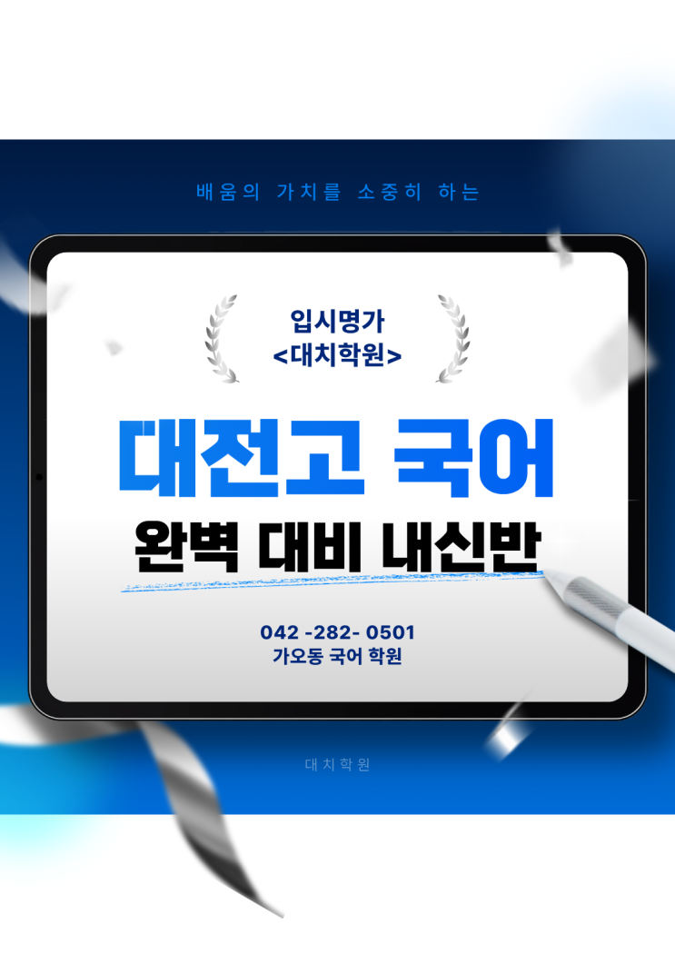 안녕하세요. 배움의 가치를 소중히 여기는 대치학원 가오캠퍼스입니다. 대전고등학교 국어 내신은 해마다 그 난이도와 출제 방식이 더욱 정교해지고 있습니다. 과거처럼 교과서 내용을 중심으로 암기하고, 문제를 반복해서 풀어보는 방식만으로는 안정적인 성적을 기대하기 어려운 환경으로 변화하고 있습니다. 최근 시험에서는 지문의 길이와 정보량이 크게 늘어나고 있으며, 하나의 문항 안에서도 여러 개념을 동시에 이해하고 적용해야 하는 문제들이 출제되고 있습니다. 특히 독서 영역에서는 단순한 내용 파악을 넘어, 문단 간의 구조, 개념 간의 관계, 필자의 주장과 근거의 연결 방식까지 정확히 이해했는지를 평가하고 있습니다. 이러한....... <img src="https://blogthumb.pstatic.net/MjAyNjA0MjhfMjQ0/MDAxNzc3MzgxNTc5NDU1.TCjgOVppMlC1sUamTtBBUf3L30yJzUS9hRLwdZ2Gvtwg.PWibKnDnqFQj_mBxJaMsUEj7M66LdNqXCo0-i-DXkEIg.PNG/%C1%A6%B8%F1%C0%BB_%C0%D4%B7%C2%C7%D8%C1%D6%BC%BC%BF%E4._%2817%29.png?type=s3" />