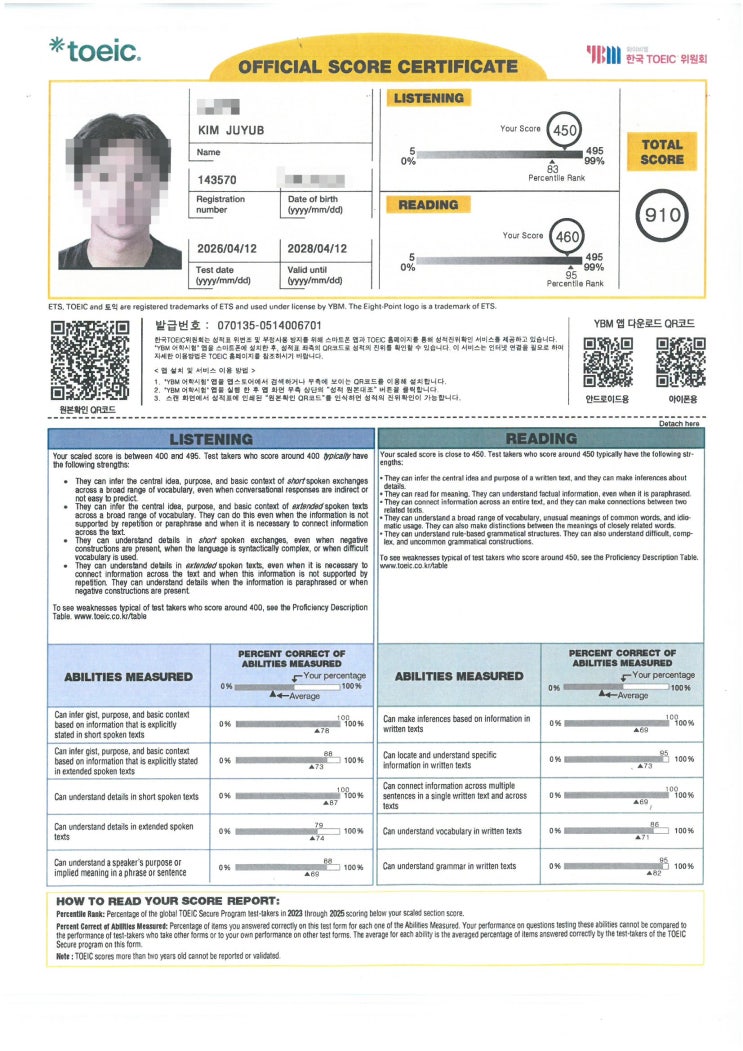 [울산 토익학원 앤토익] 오전 중급반 910점 달성하고 울주군 청년 자기개발비 받고!