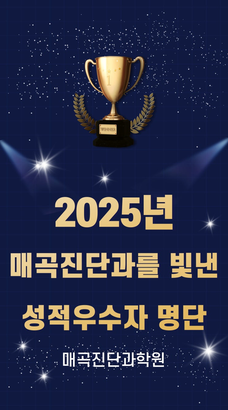 2025년 매곡진단과학원을 빛낸 성적우수자 명단입니다. 결산해서 올립니다. 2026년 1학기 중간고사도 잘 마무리해서 좋은 결과가 나왔으면 좋겠습니다. <img src="https://blogthumb.pstatic.net/MjAyNjA0MjhfMjI1/MDAxNzc3MzY3NDg5ODgz.be49M8WUNE-MWBXlq5XTFsiVcKFPW05EarCj8mYaa4Eg.DuUnOMToZlIuwZdhRZFwqz24pxH48DeNPhu4T5s9pwYg.JPEG/001.jpg?type=s3" />