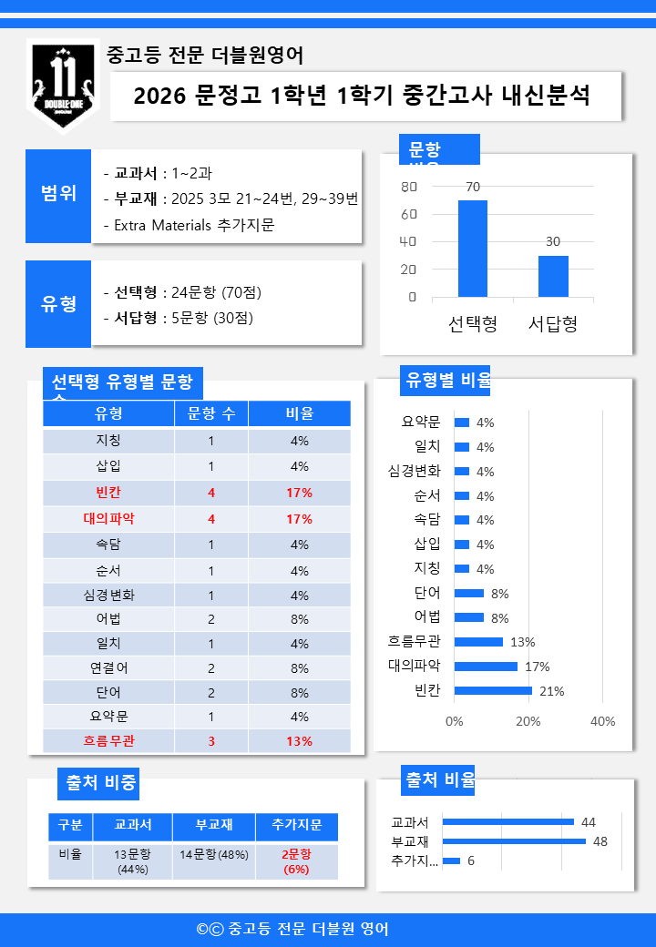 더블원 문정고1 중간고사 내신분석본 [위례영어학원]